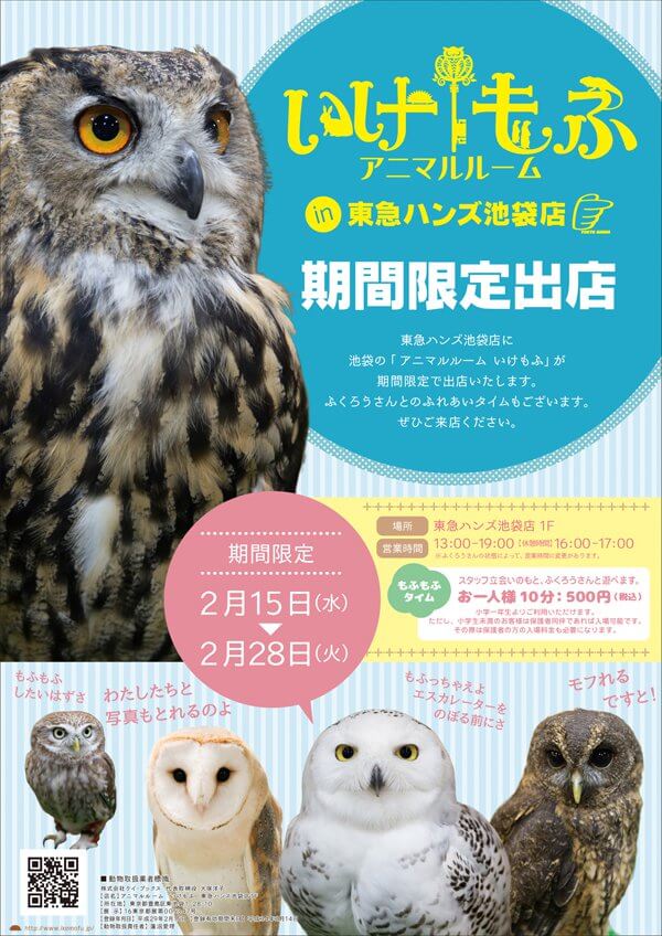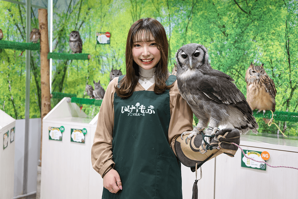 小動物・ふくろう・爬虫類など、いろいろな種類の動物さんたちとふれあえるお店です。