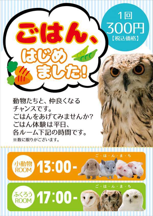 (ふくろうのごはん体験は70分コース以上のお客様が対象となります。)