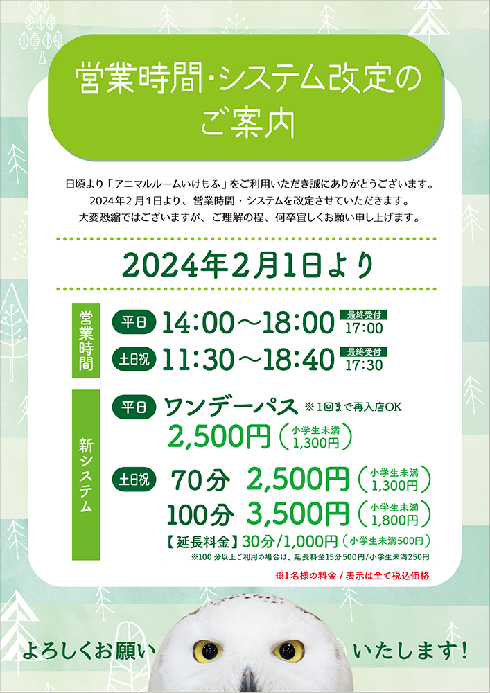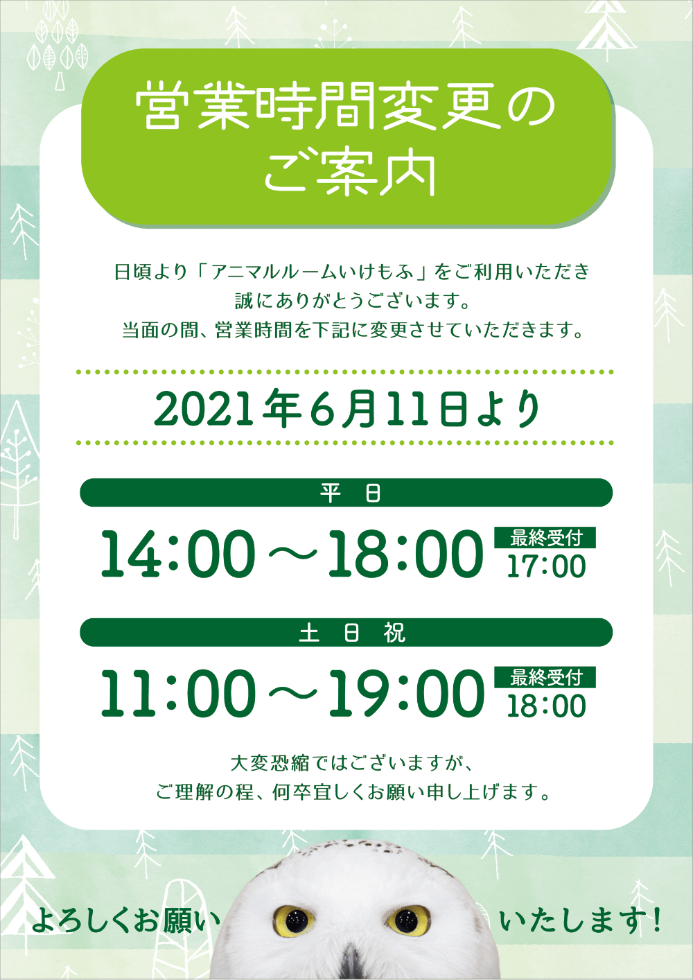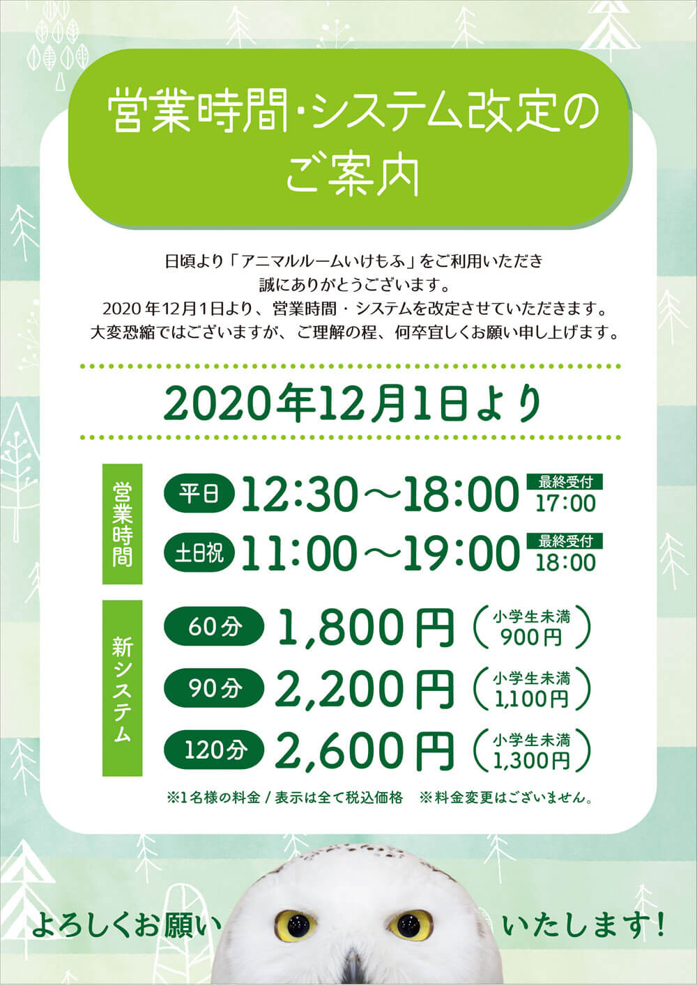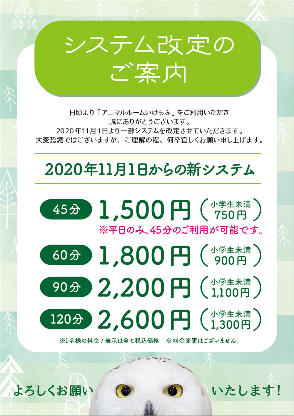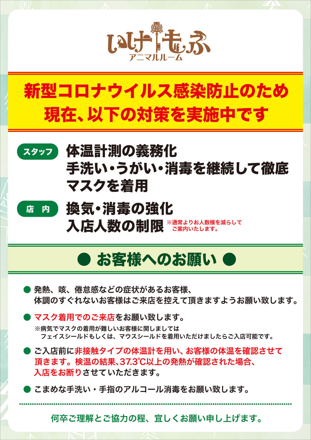 日頃より「アニマルルームいけもふ」をご利用いただき ありがとうございます。