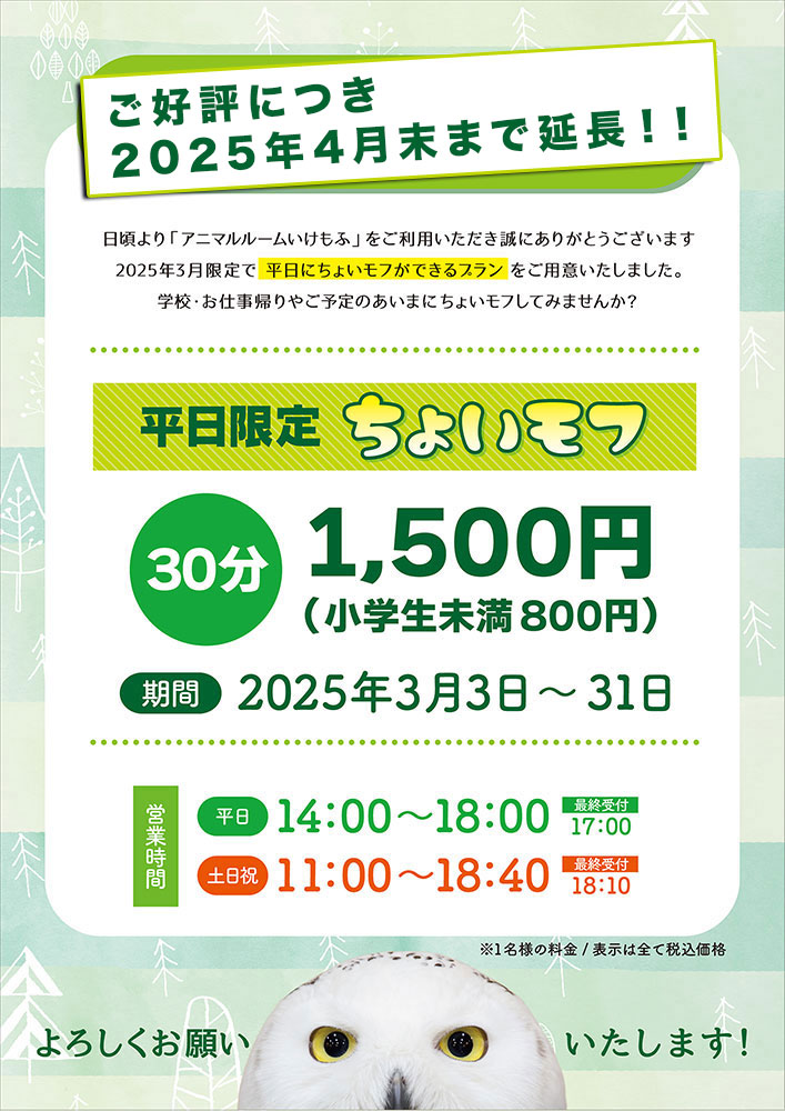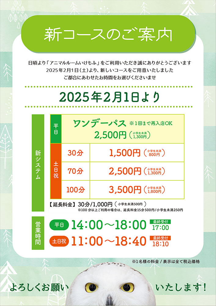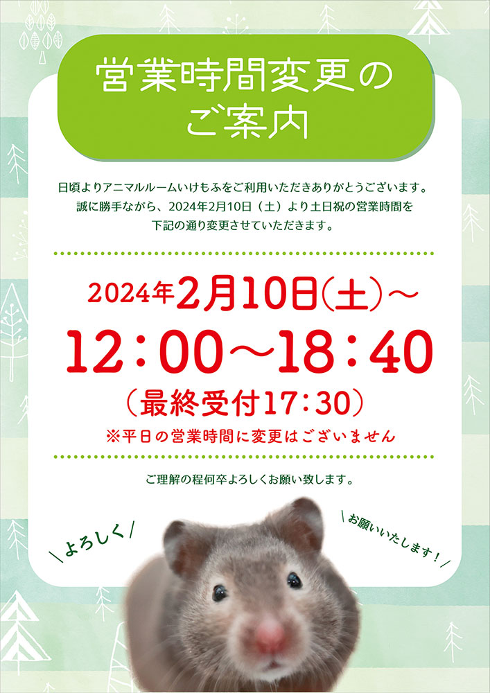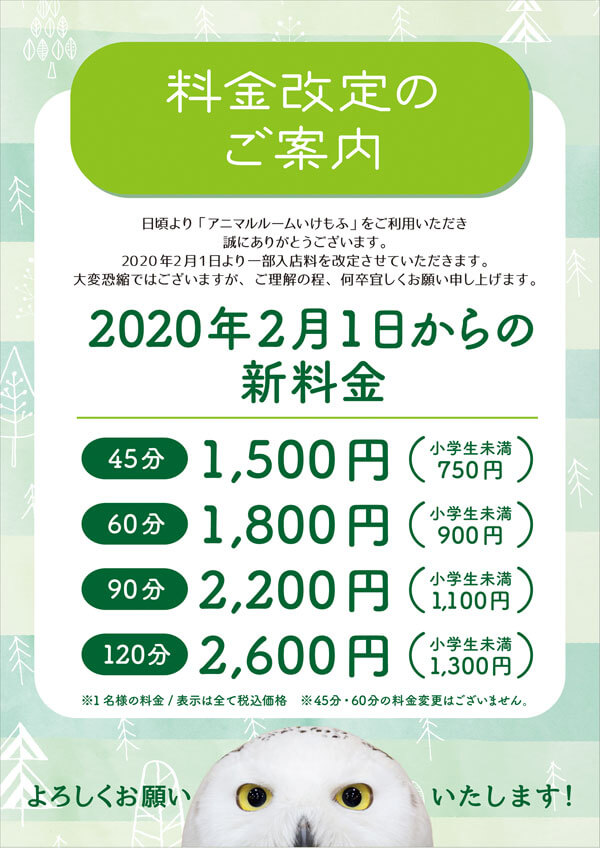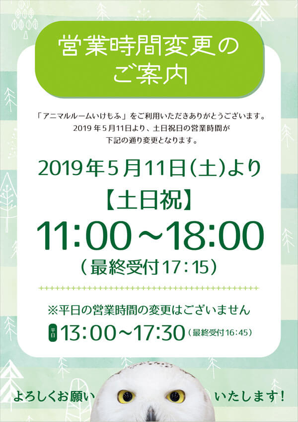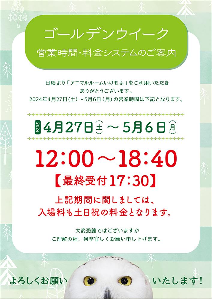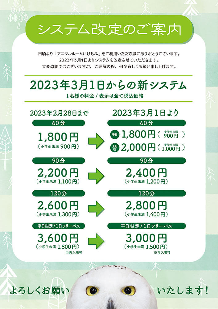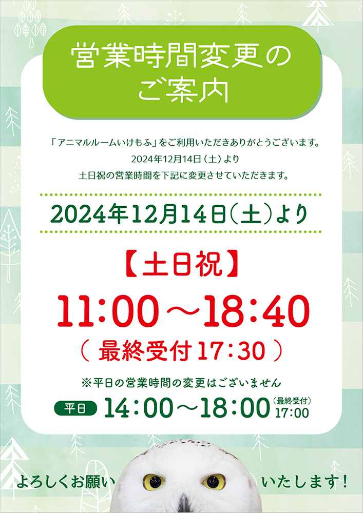 日頃より「アニマルルームいけもふ」をご利用いただき ありがとうございます。