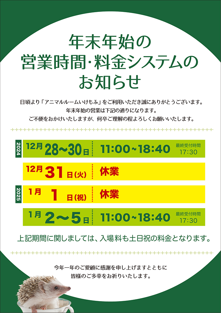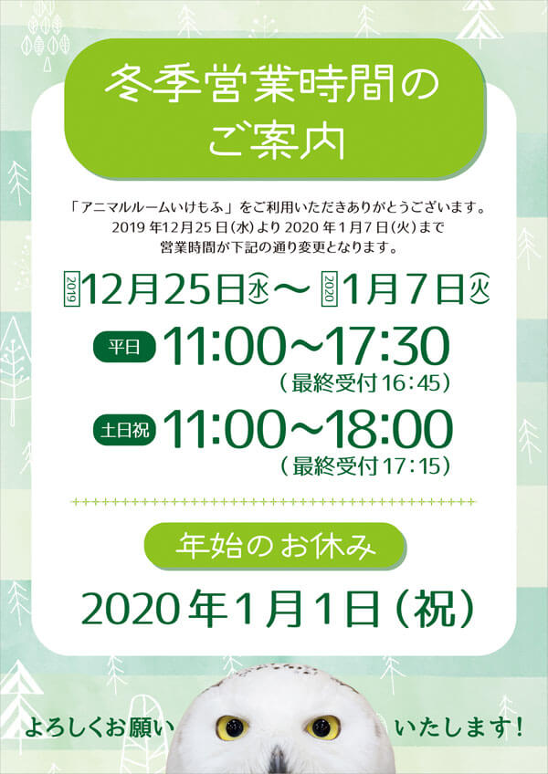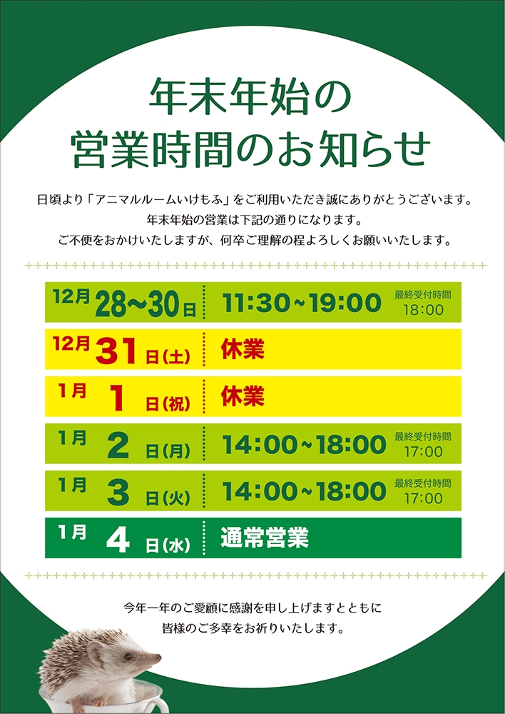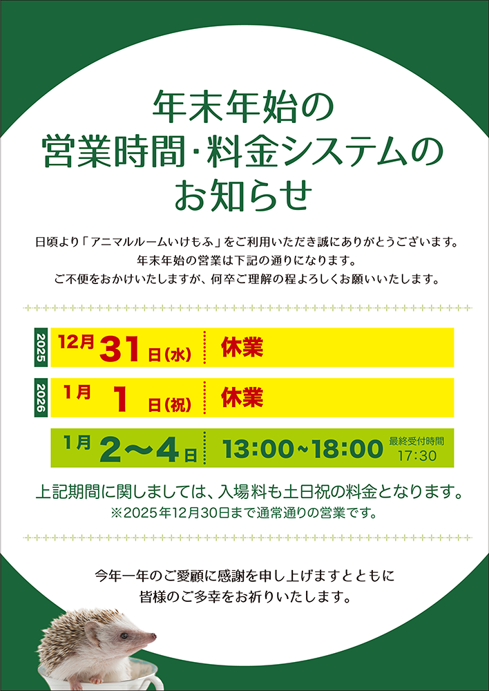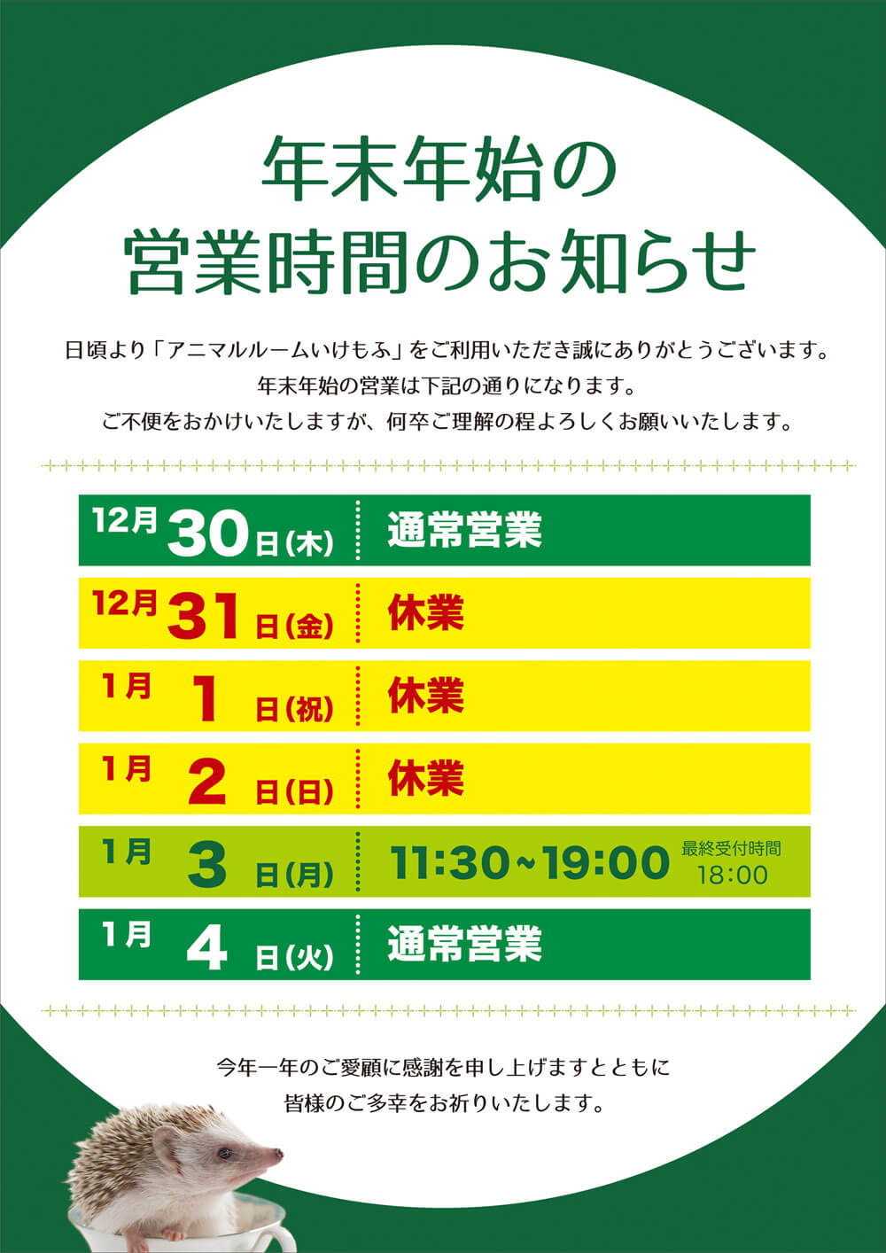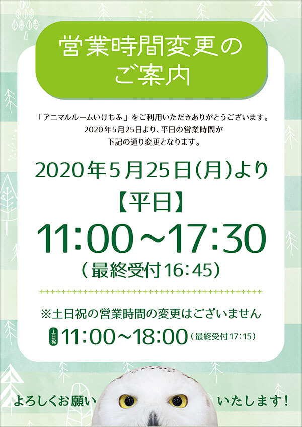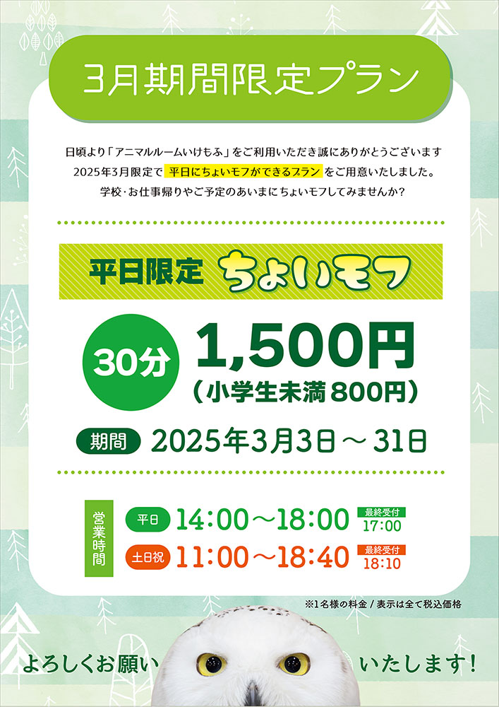 日頃より「アニマルルームいけもふ」をご利用いただき ありがとうございます。
